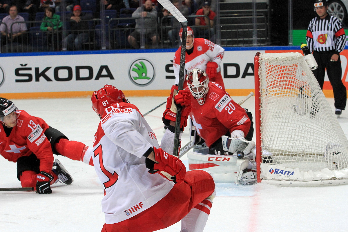 Lars Eller takes a shot at Reto Berra