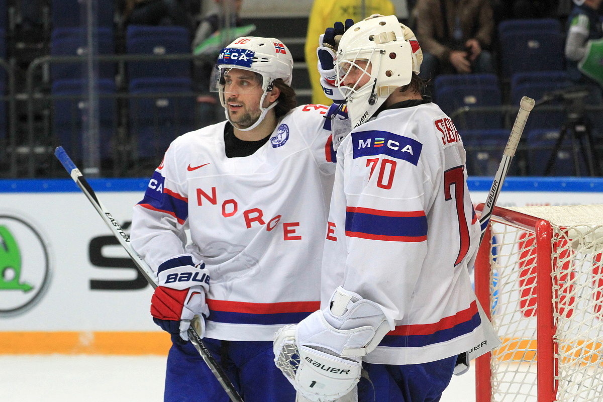 Andreas Stene and Elvis Merzlikins @WC2016 Photo: Michal Eger
